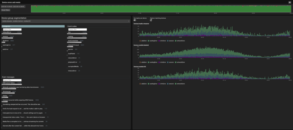 Drill down from a service-level view to affected channels, assets, or devices in real time. Agama’s end-to-end observability and advanced correlation capabilities make it easier to identify where an issue originates, how many viewers are affected, and what to fix first, reducing time-to-resolution and improving overall service quality.